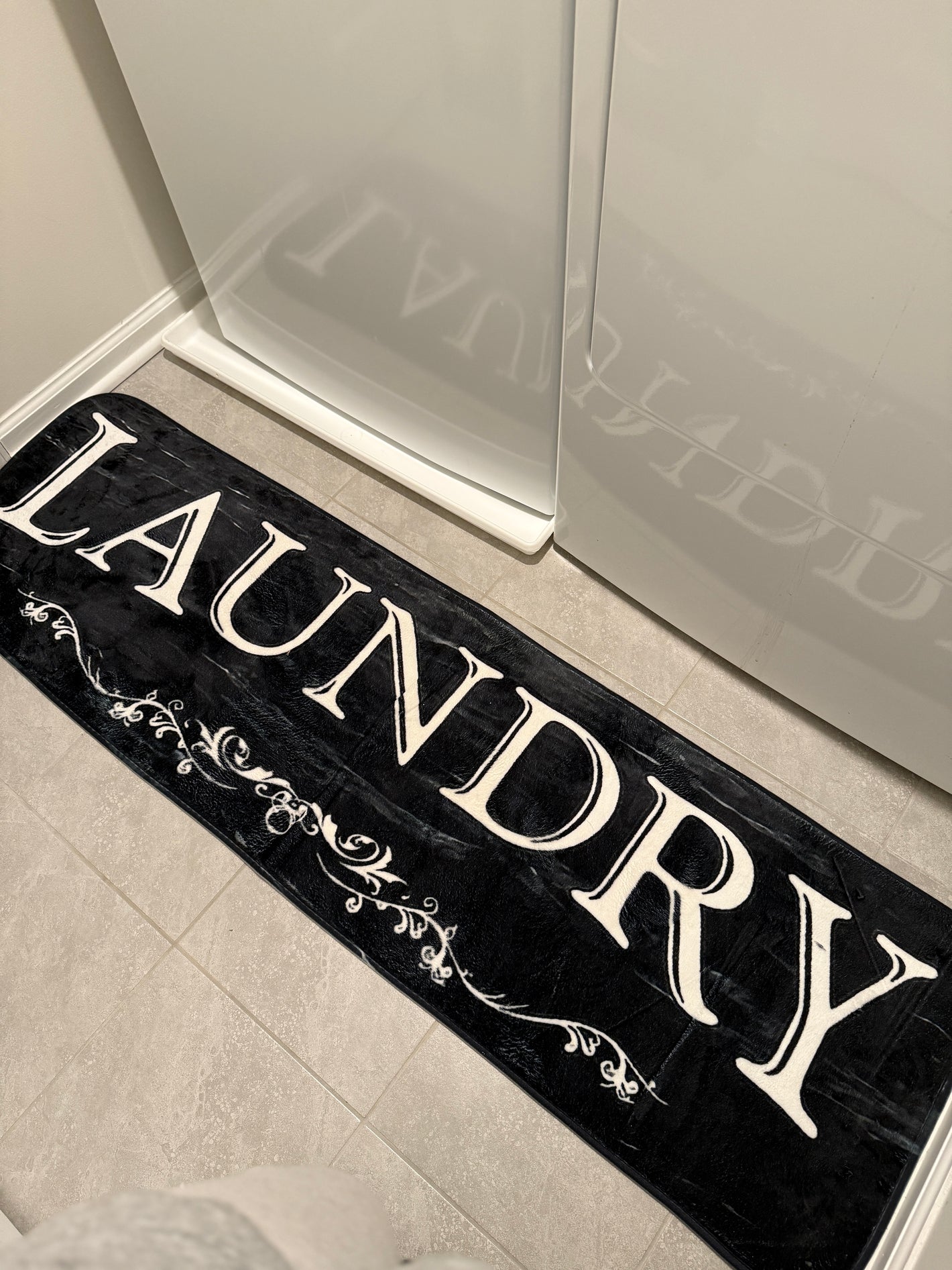 "I found this cute to give my tiny laundry room some character. Tends to slide a little but not a pain considering it's not a high traffic area."
